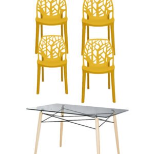 Mesa de vidrio con patas de madera y excelente calidad: